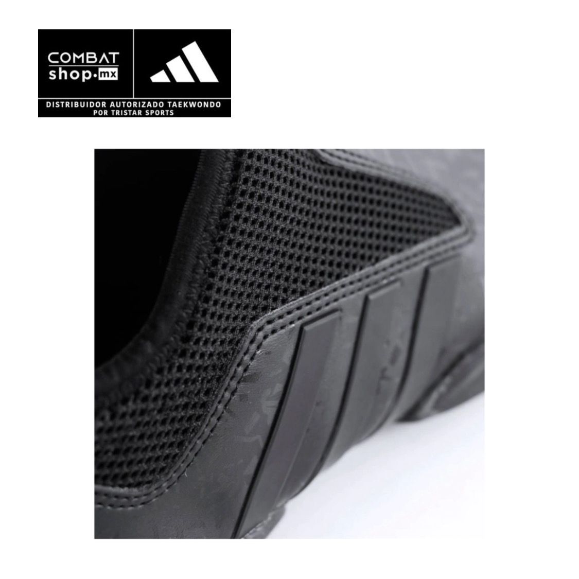 Nuestro calzado deportivo ADITBR01-N fue concebido en Corea del sur específicamente para los Juegos Olímpicos de Río, en Brasil. Gracias a su diseño inteligente son livianos y proporcionan agilidad en el desplazamiento, cuenta con un refuerzo de estabilidad en el antepié, puntos de pivote delanteros y traseros y suela segmentada para una mejor flexibilidad del pie al patear. Dispone de una malla en la parte inferior para optimizar el flujo de aire. Su envolvente color negro da lugar a movimientos de impacto.